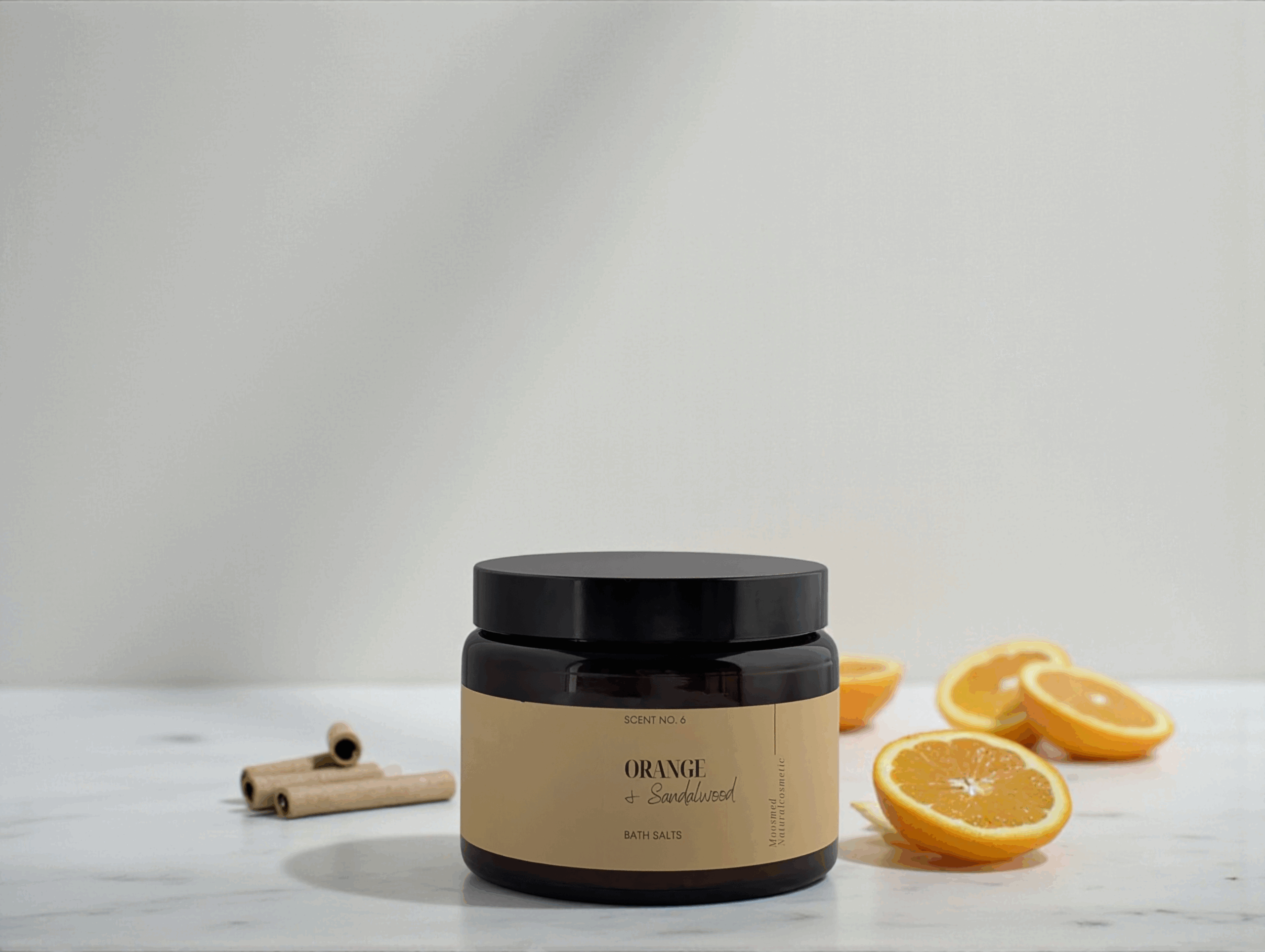 Entspannen Sie mit den ORANGE + Sandalwood Bath Salts von Moosmed. Die harmonische Duftkomposition aus Zitrus und Sandelholz lockert die Muskulatur und sorgt für Tiefenentspannung. Ideal fürs abendliche Badeerlebnis!
